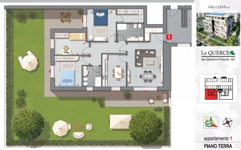 Apartment of 149 sqm with garden for sale in San Giovanni in Persiceto in the Emilia Romagna region, Italy.